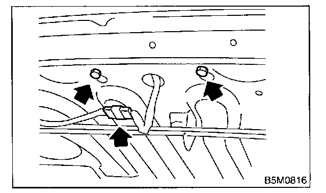4. Remove screws (d) and then detach high-mounted stop light while disconnecting connector.