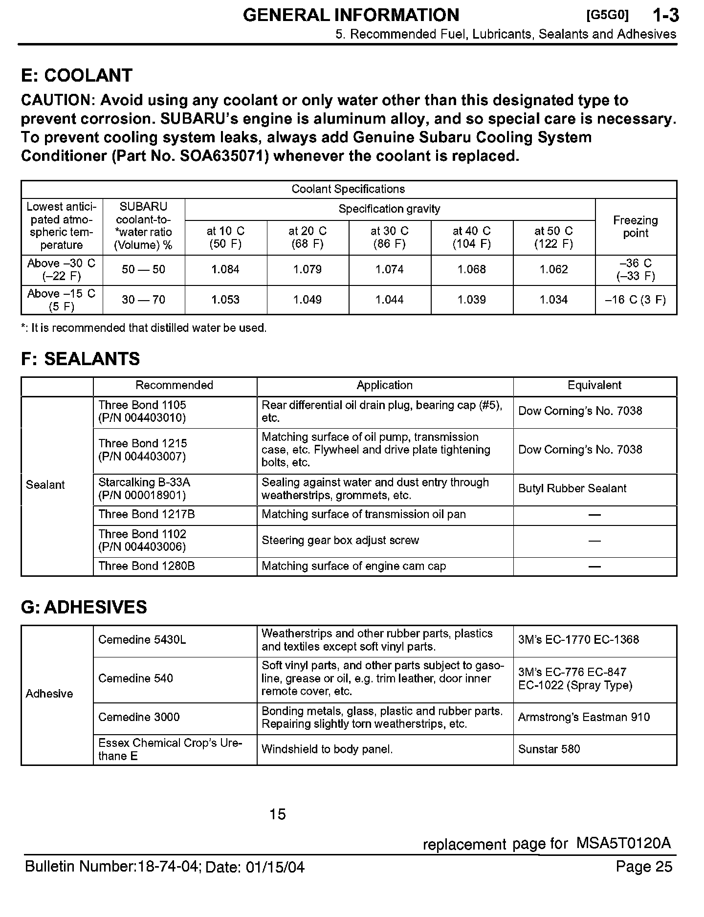 Outback F4-2.5L SOHC
