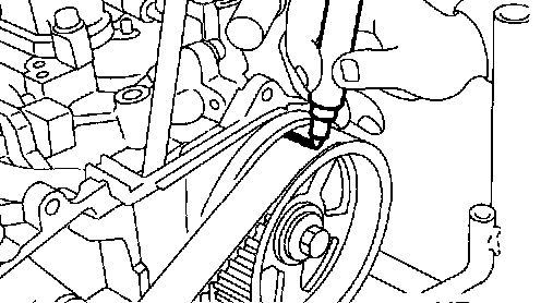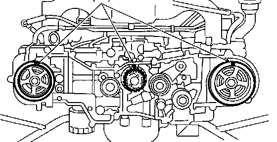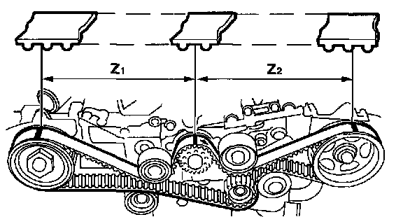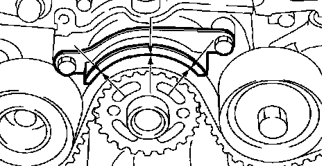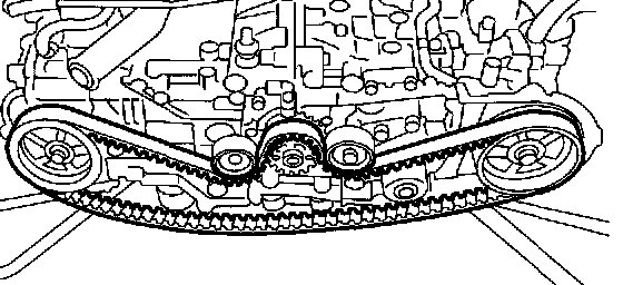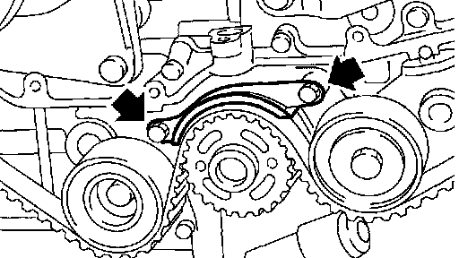2. Using white paint, put alignment and/or arrow marks on timing belts in relation to the crank sprocket and cam sprockets.