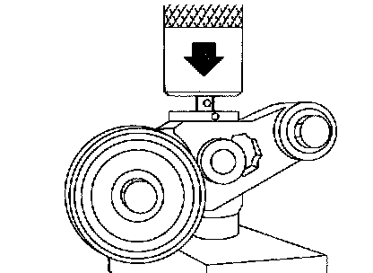 2. With the adjuster rod moved all the way up, apply a pressure of 294 N (30 kgf, 66 lb) to it. Check adjuster rod stiffness. the adjuster rod is not stiff and moves down, replace the automatic belt tension adjuster assembly with a new one.