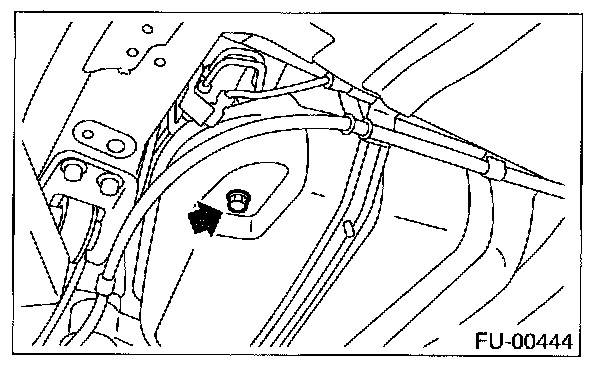 4. Drain fuel from fuel tank. Set a container under the vehicle and remove drain plug from fuel tank.