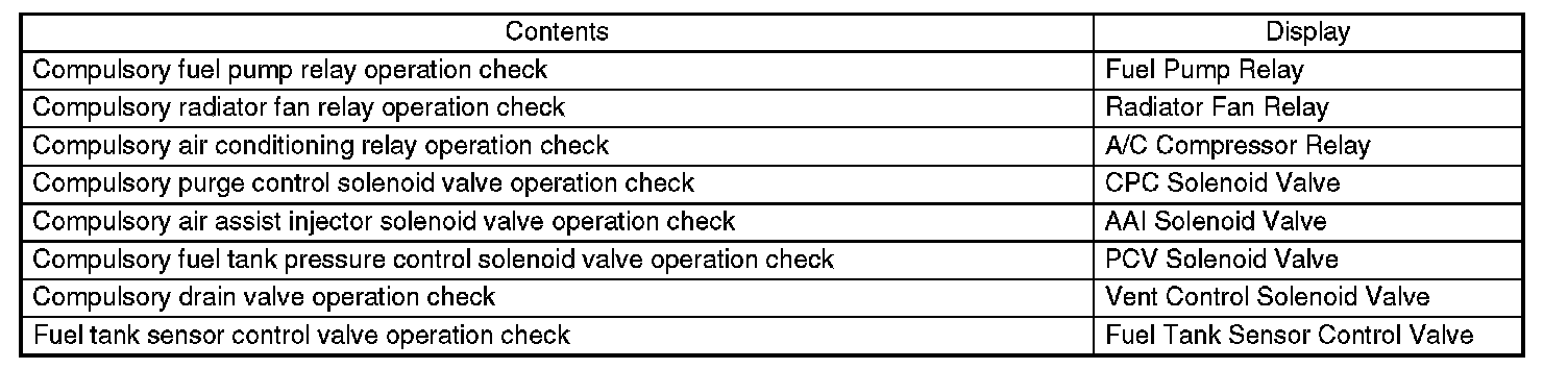11. On the System Operation Check Mode display screen, select the {Actuator ON/OFF Operation} and press the [YES] key.
