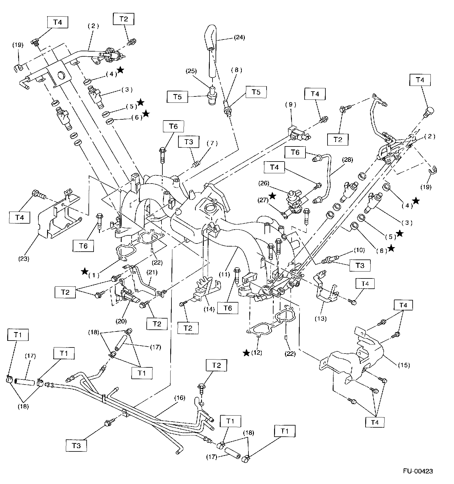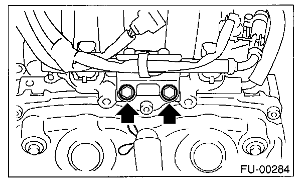 13. Remove bolt which holds fuel pipe on the left side intake manifold.