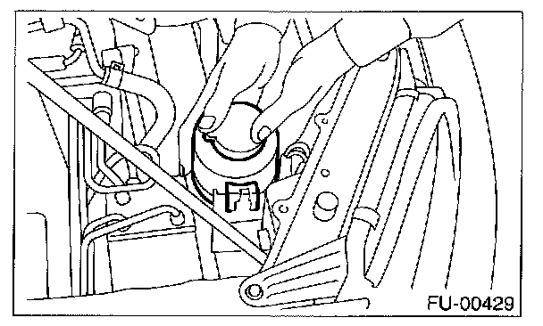 5. Remove power steering tank from the bracket by pulling it upwards.