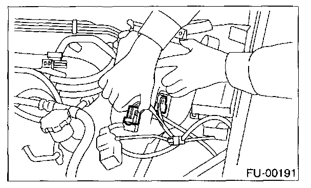 7. Disconnect rear window glass washer hose from washer motor, then plug connection with a suitable cap.