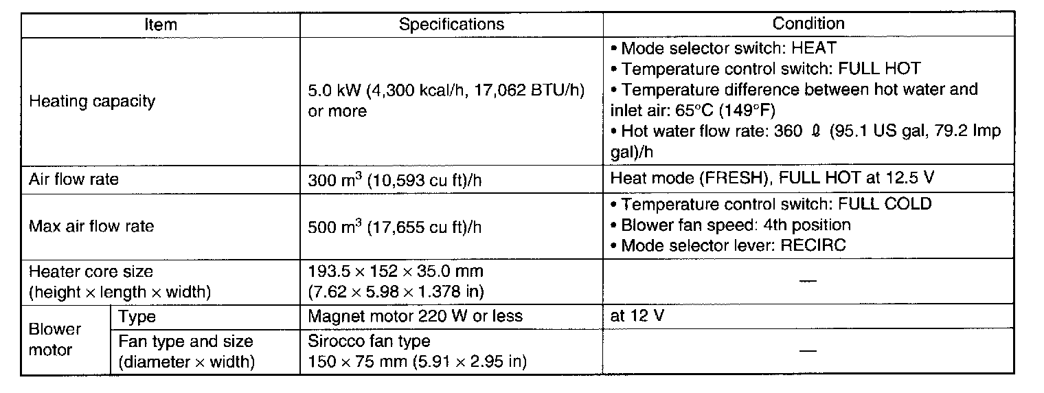 Specifications - Heater System: