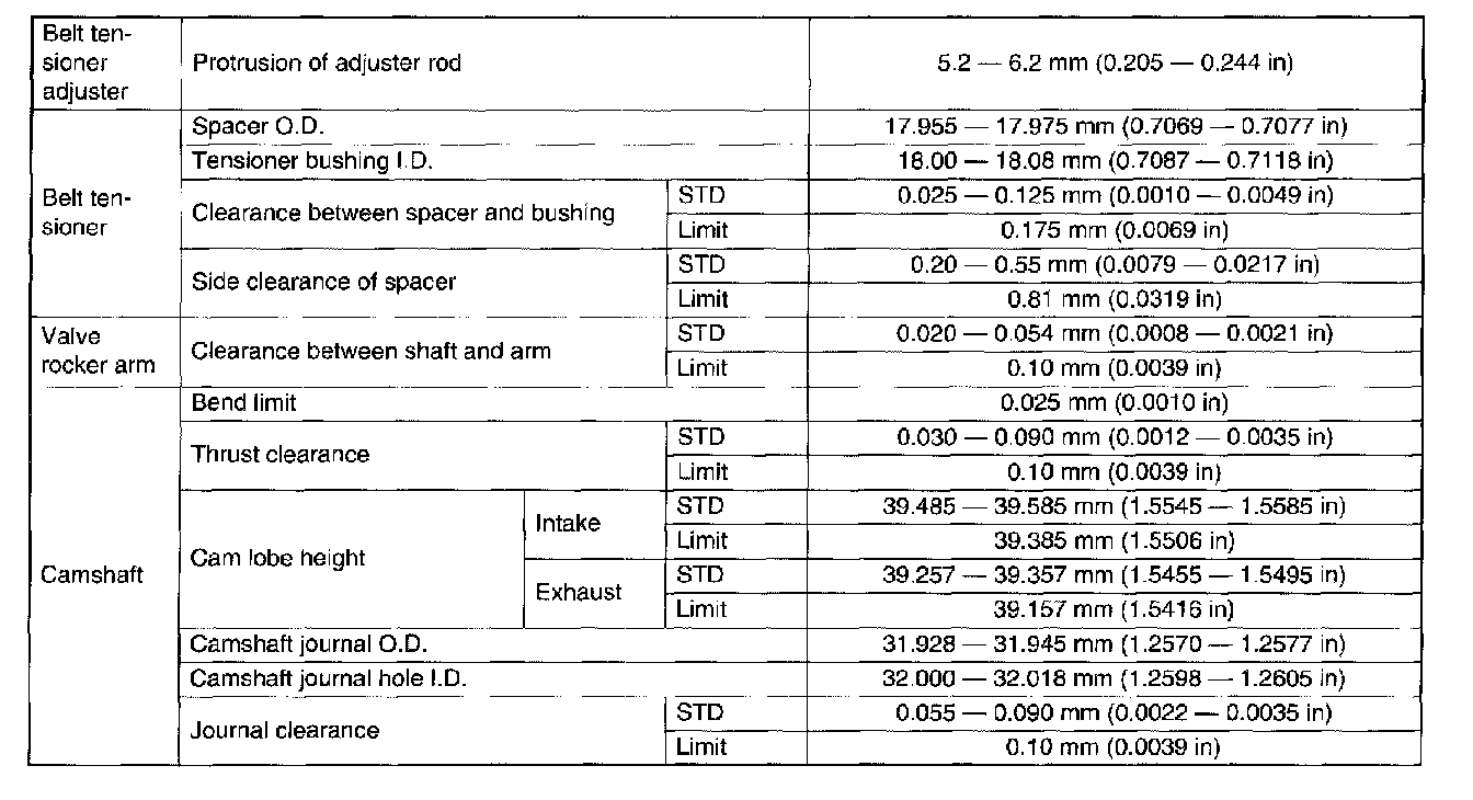 STD: Standard I.D.: Inner Diameter O.D.: Outer Diameter US: Undersize OS: Oversize