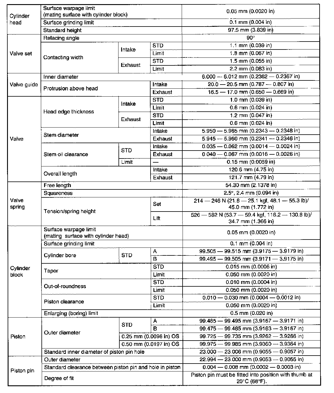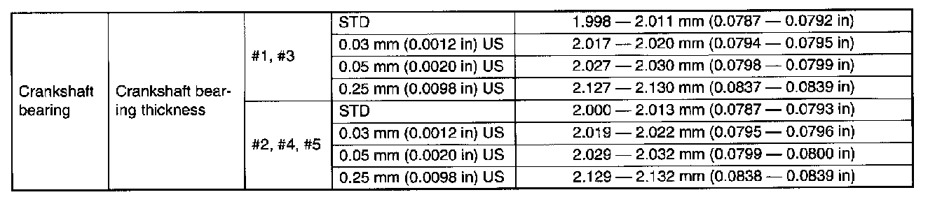SPECIFICATIONSNote: STD: Standard I.D.: Inner Diameter O.D.: Outer Diameter US: Undersize OS: Oversize