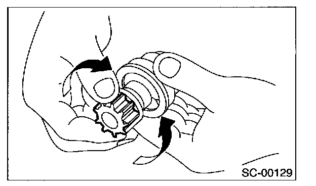 Inspect teeth of pinion for wear and damage. Replace if it is damaged. Rotate pinion in correct direction of rotation (counter clockwise). It should rotate smoothly. But in opposite direction, it should be locked.