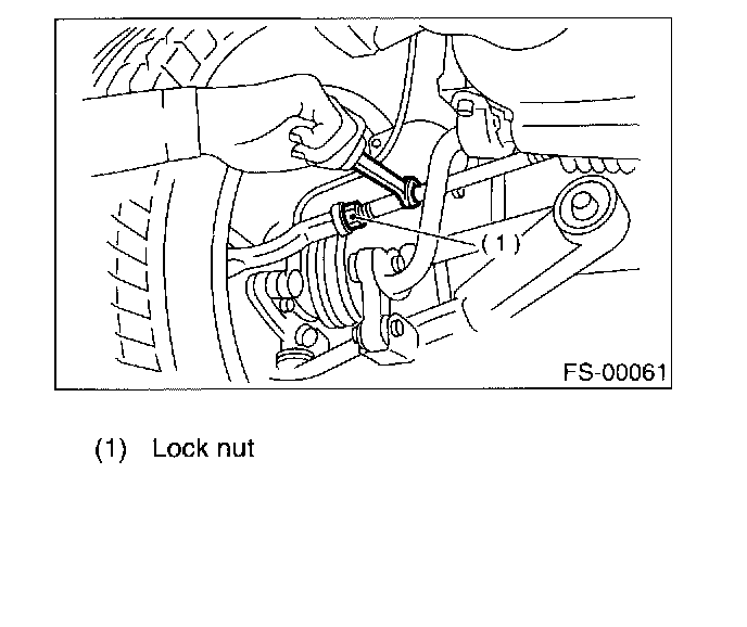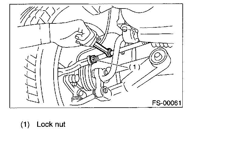 1. Loosen the left and right side steering tie-rods lock nuts.