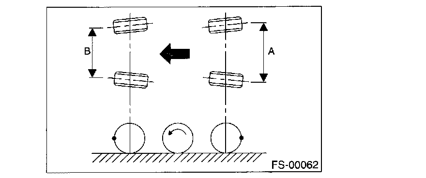 2. Mark rear sides of left and right tires at height corresponding to center of spindles and measure distance"A" between marks.