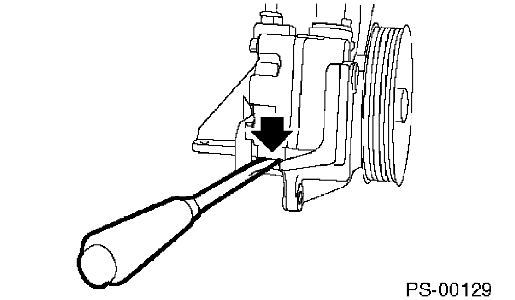 3. Loosen lock bolt and slider bolt and remove power steering pump drive V-belt.