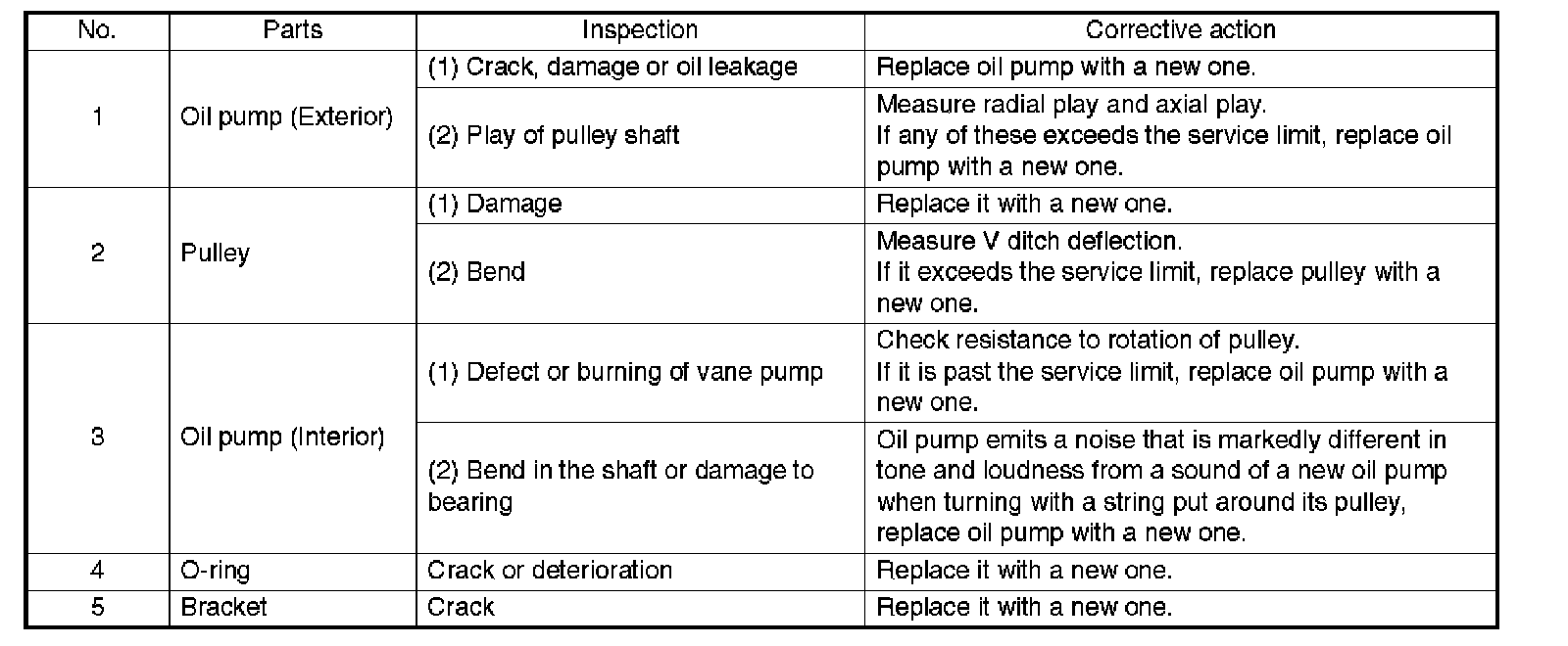 In accordance with the table, check all removed parts for wear and damage, and make repair or replacement if necessary.