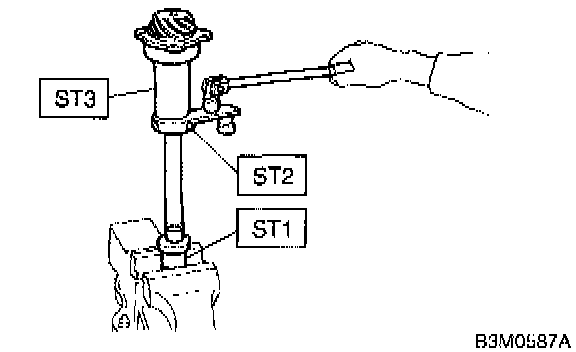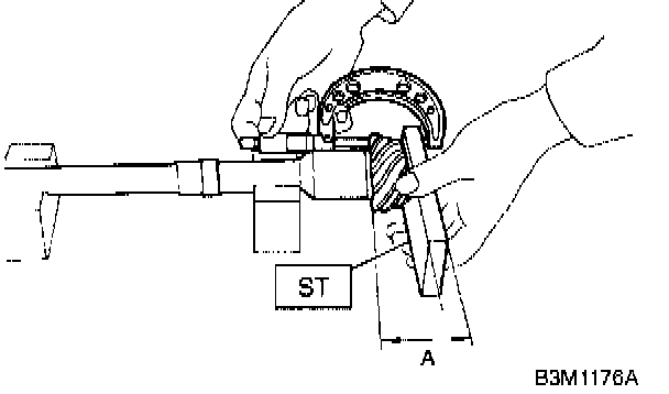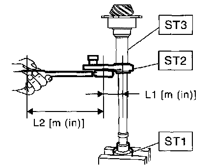 3. Rotate the drive pinion several times with ST1 and ST2.