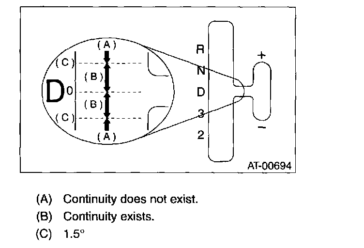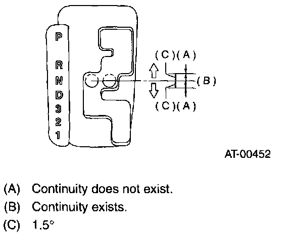 3. Check if there is continuity at equal points when the select lever is turned 1.5° in both directions from "N" range.