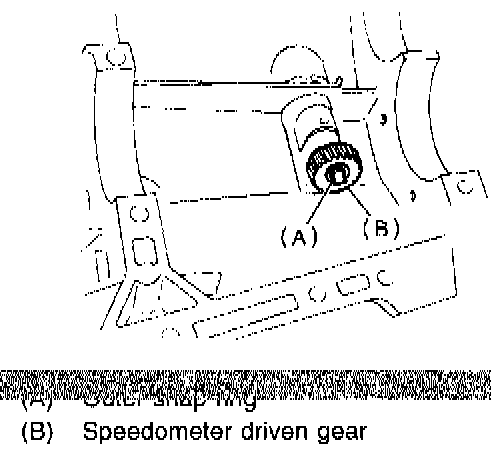 6. Remove outer snap ring and pull out speedometer driven gear. Next, remove oil seal, speedometer shaft and washer.