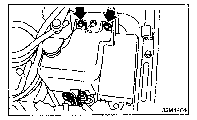 Remove the 2 bolts, hose and connector and then remove the tank.
