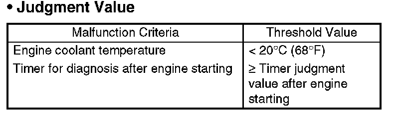 Time Needed for Diagnosis: To be determined. (It is varied by the Min. engine coolant temperature and engine conditions such as vehicle speed and engine coolant temperature.)