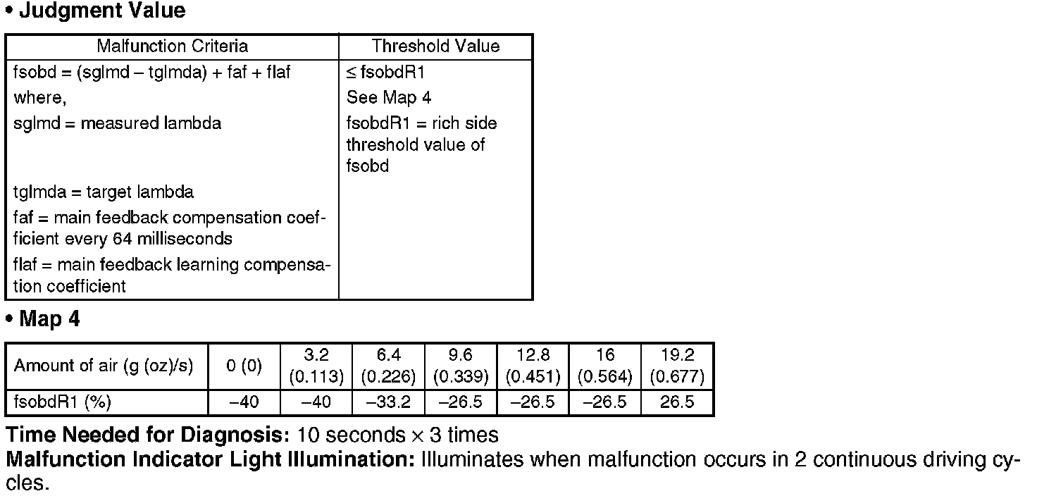 Judge that the fuel system malfunction occurs when the time during completing the malfunction criteria continues 30 seconds or more by comparing the diagnosed value (fsobd) with threshold value.