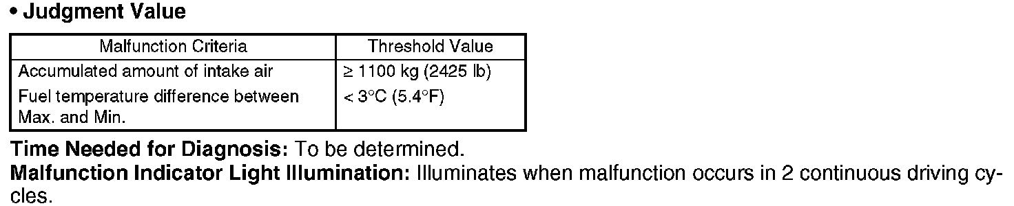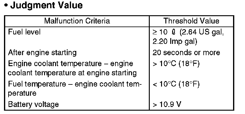 Normally fuel temperature is lower than engine coolant temperature. When the fuel temperature becomes higher than the engine coolant temperature, the range is considered to be shifted, and make an NG judgment.
