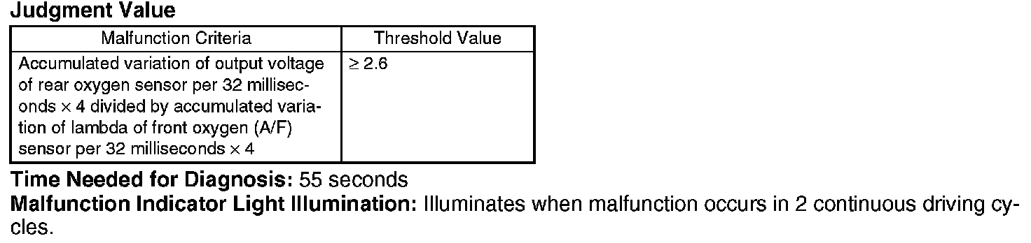 After the malfunction criterias are completed, calculate the output fluctuation value of front oxygen (A/F) sensor (average of left and right) and output fluctuation value of rear oxygen sensor. Calculate the diagnosis value when the front oxygen (A/F) sensor output fluctuation value more than specified value.