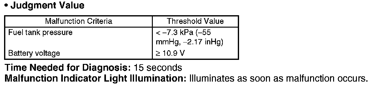 Judge NG when the continuous time of completing the malfunction criteria becomes more than 15 seconds.