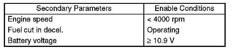 - Fuel cut control: Vehicle speed = 0 km/h (0 MPH) / Not allowed to carry out the fuel cut.