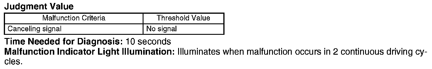Judge NG when the cruise control set signal is continued to be ON for a certain period of time at the vehicle speed less than 20 km/h (12 MPH).