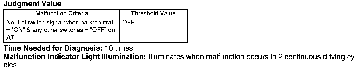 DTC P0851 - NEUTRAL SWITCH INPUT CIRCUIT LOWOUTLINE OF DIAGNOSIS