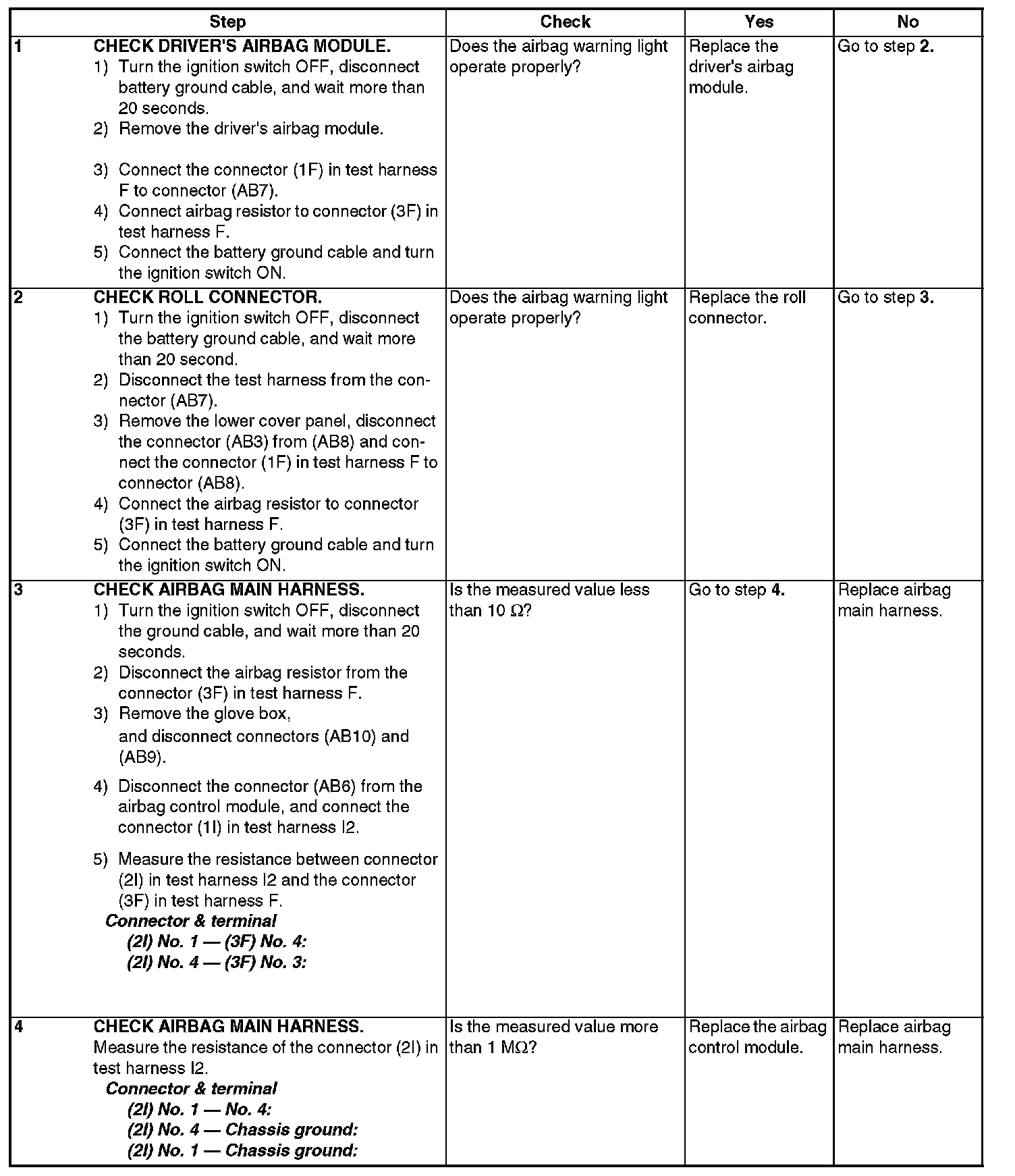 - Airbag main harness circuit is open, shorted or shorted to ground.