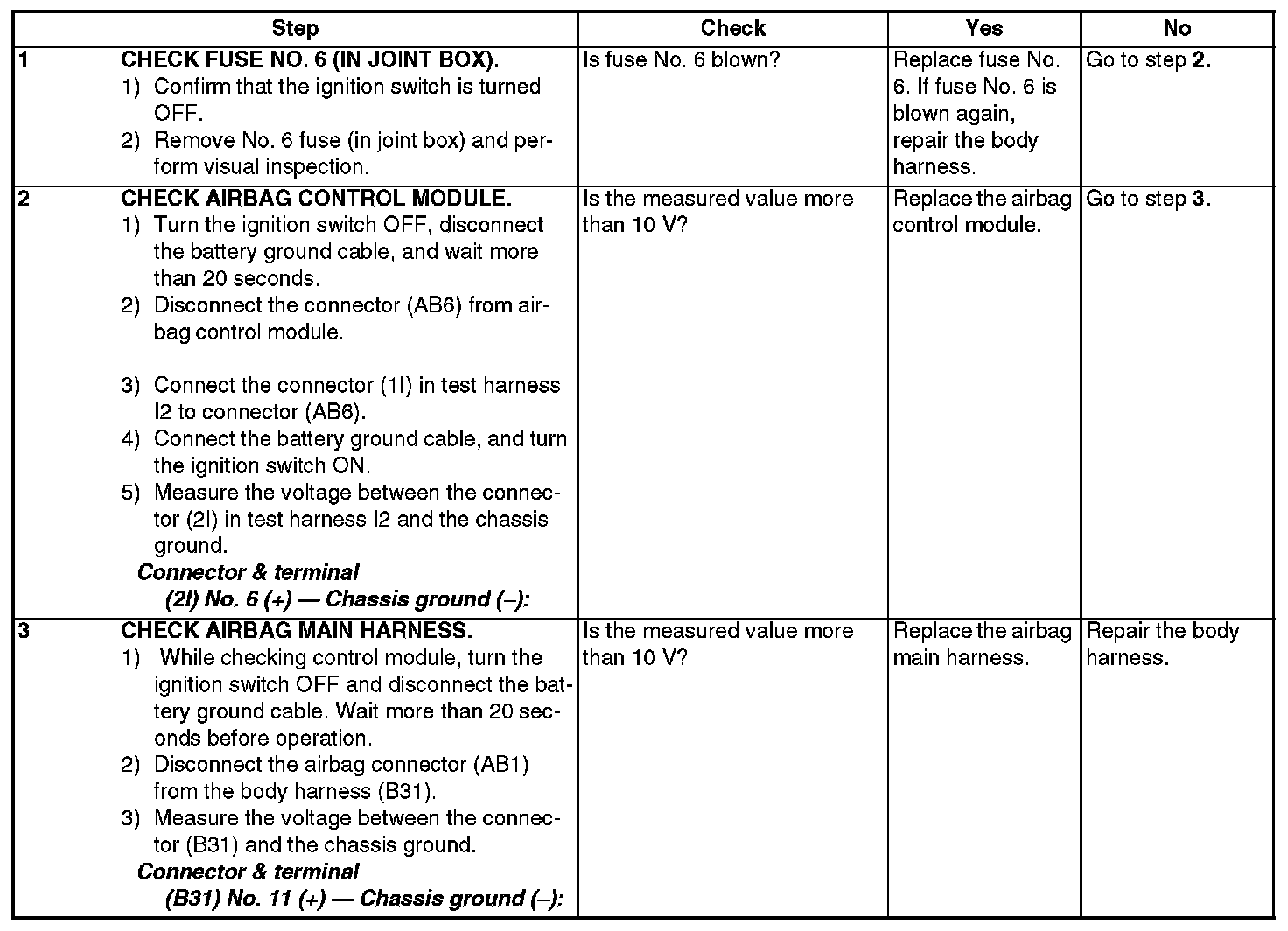 - Before replacing the airbag module, roll connector, control module, and sensor, reconnect each part and confirm that the warning light operates properly.