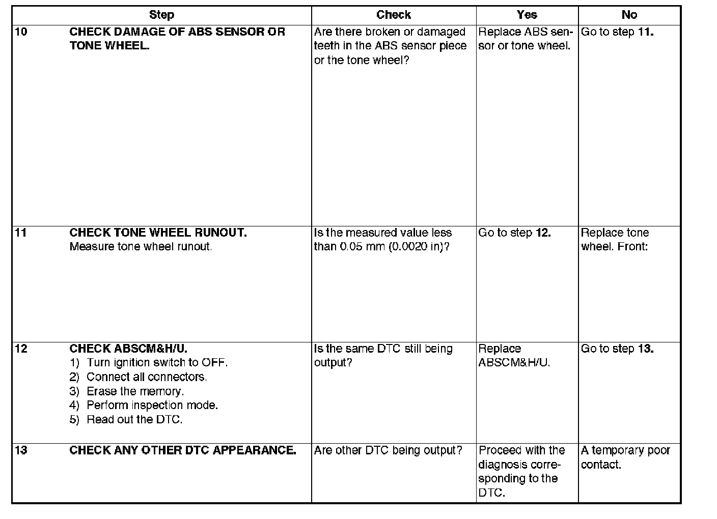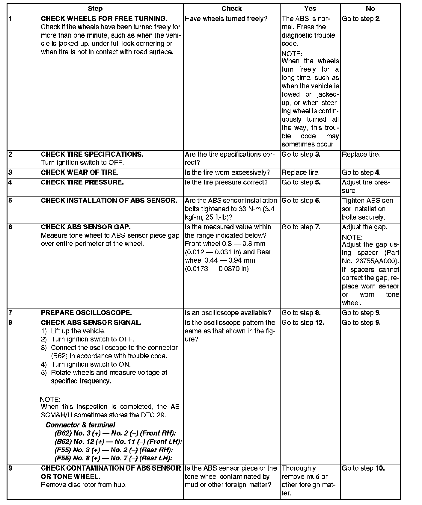 DTC 29 ABNORMAL ABS SENSOR SIGNAL ON ANY ONE OF FOUR SENSORSteps 1-9: