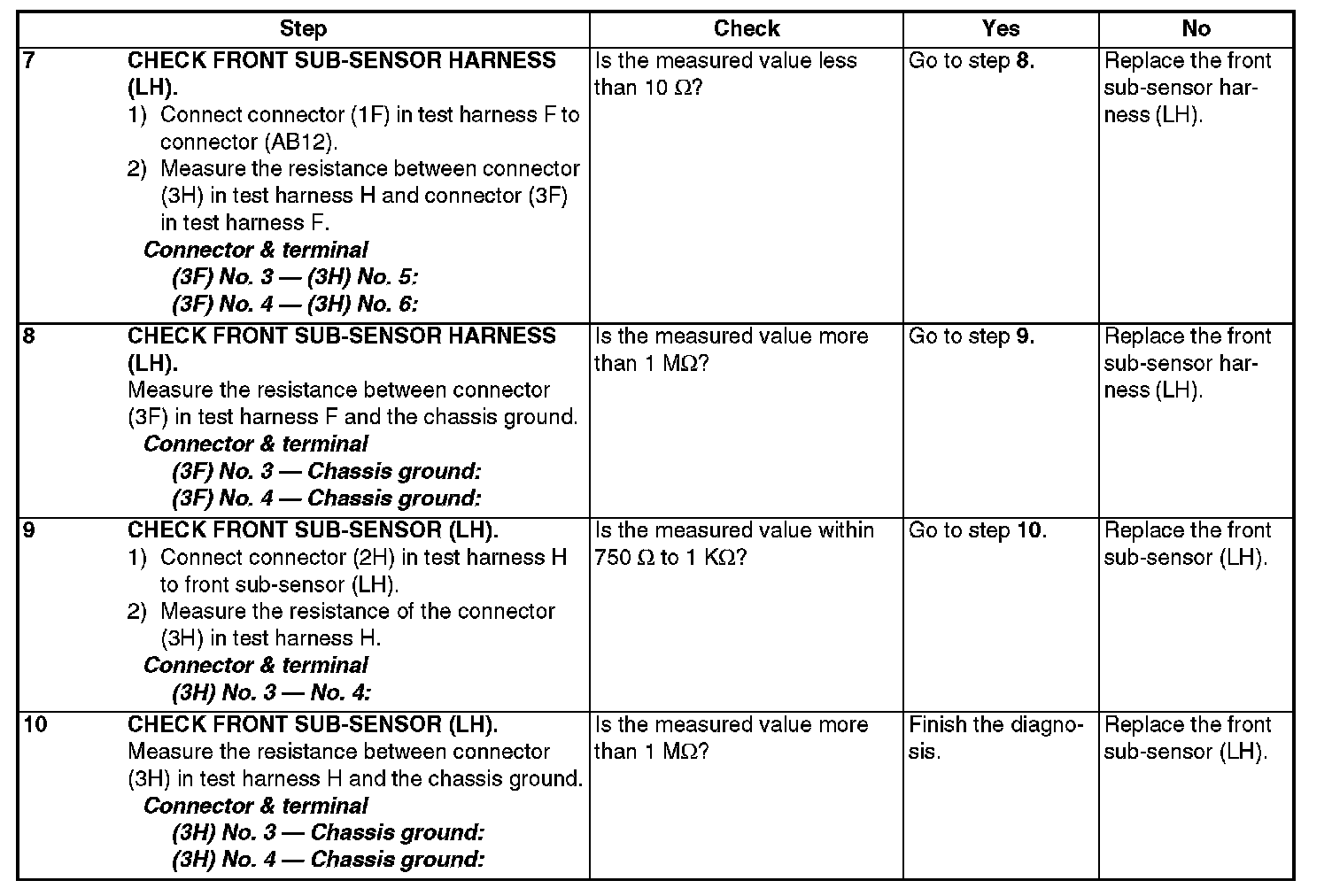 - When inspecting the airbag main harness, disconnect the driver's airbag module and passenger's airbag module connectors for safety reasons.
