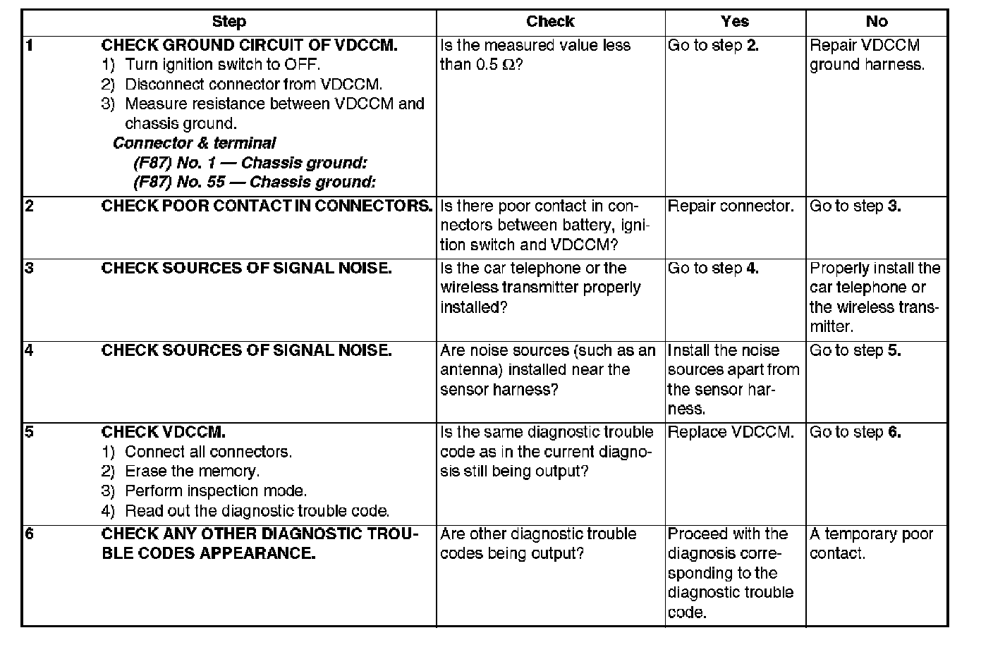Vdc System Trouble Code Charts For Select Monitor Results