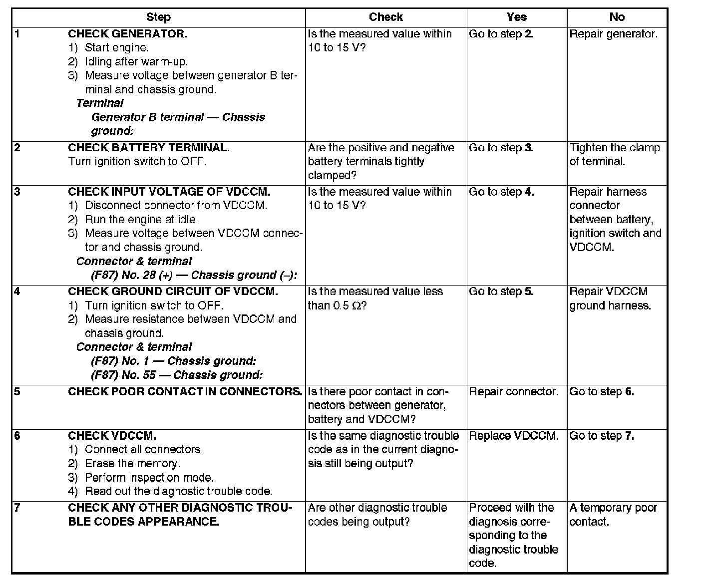 Vdc System Trouble Code Charts For Select Monitor Results