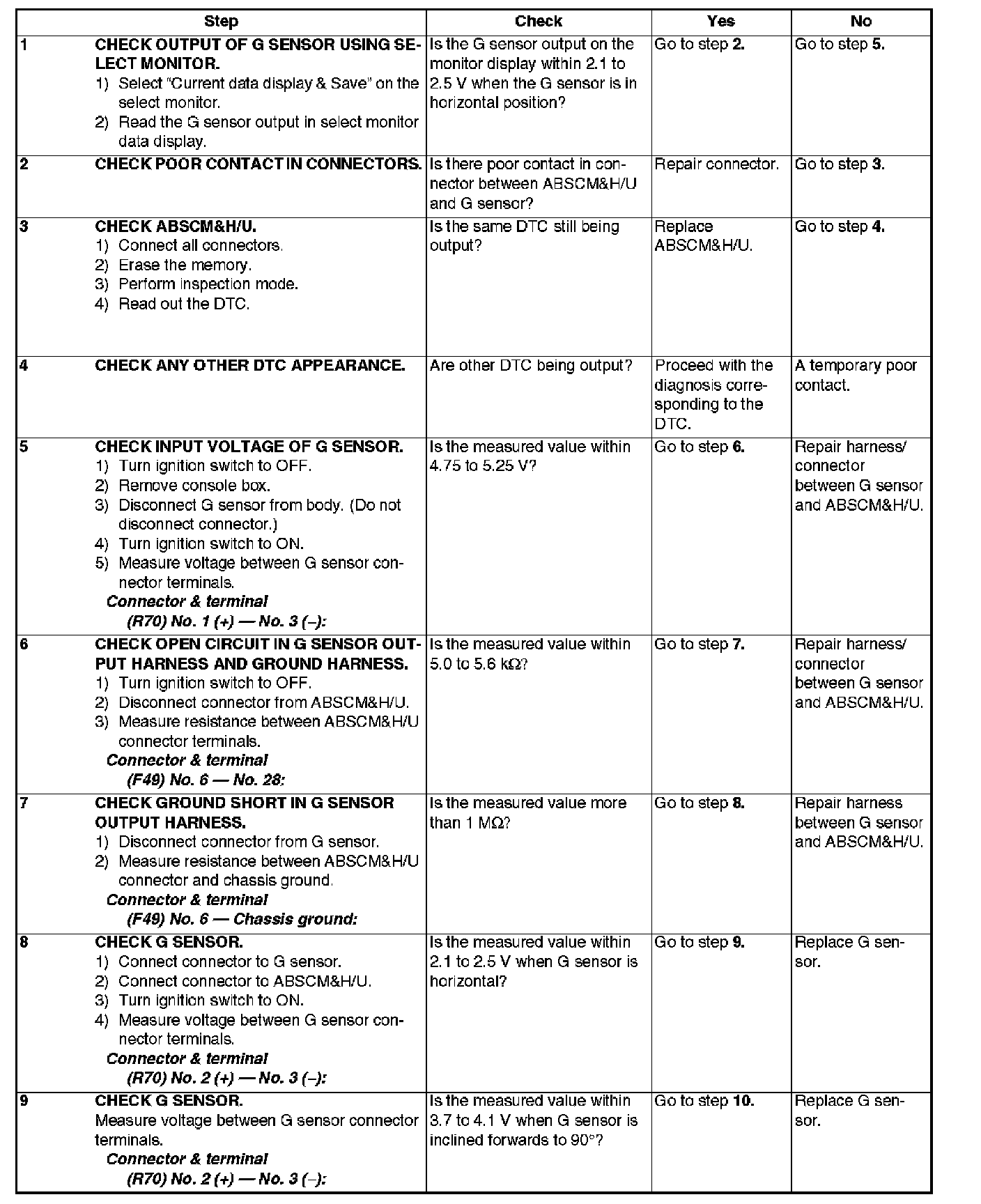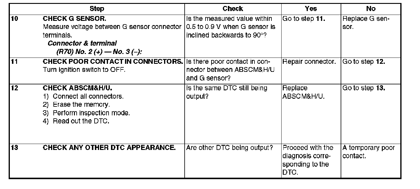 DTC 56 OPEN OR SHORT CIRCUIT IN G SENSOR CIRCUIT