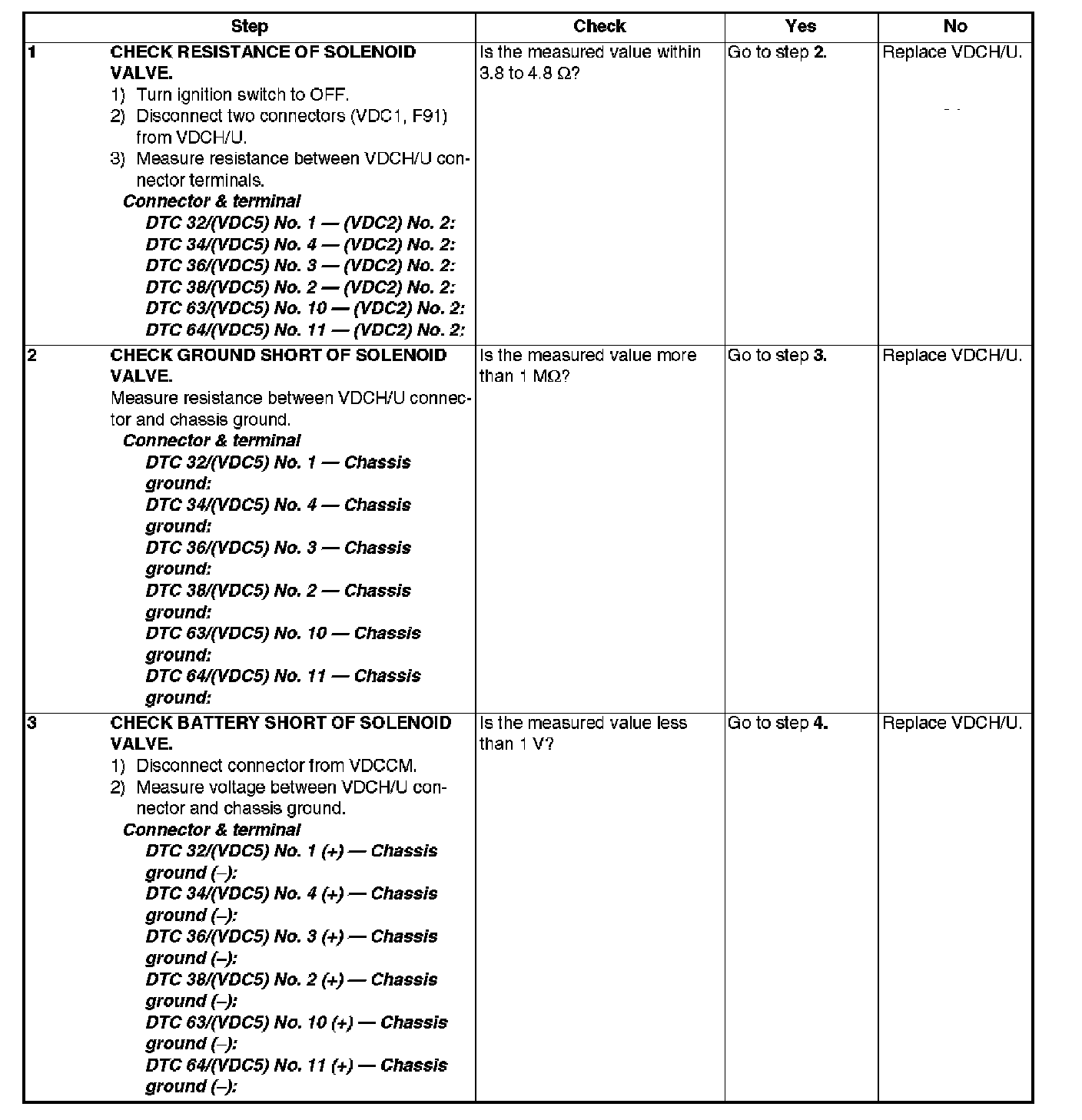 Vdc System Trouble Code Charts For Warning Light Codes