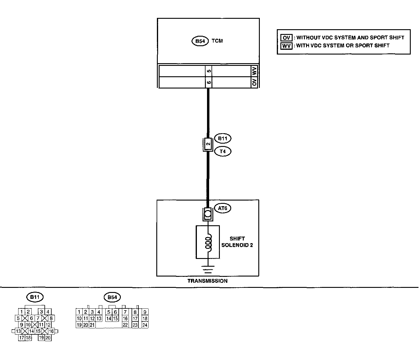 Output signal circuit of shift solenoid 2 is open or shorted.