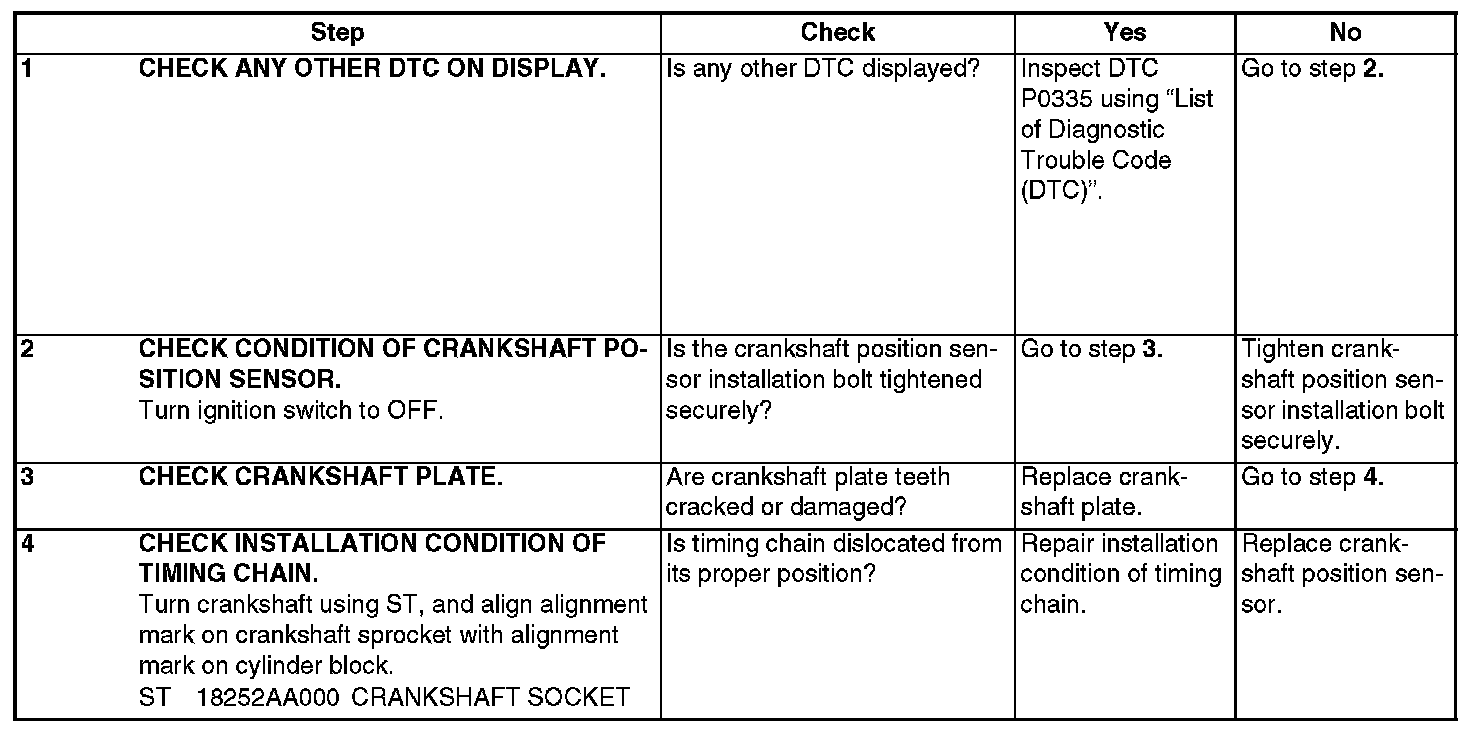DTC P0336 - CRANKSHAFT POSITION SENSOR "A" CIRCUIT RANGE/ PERFORMANCEDTC DETECTING CONDITION