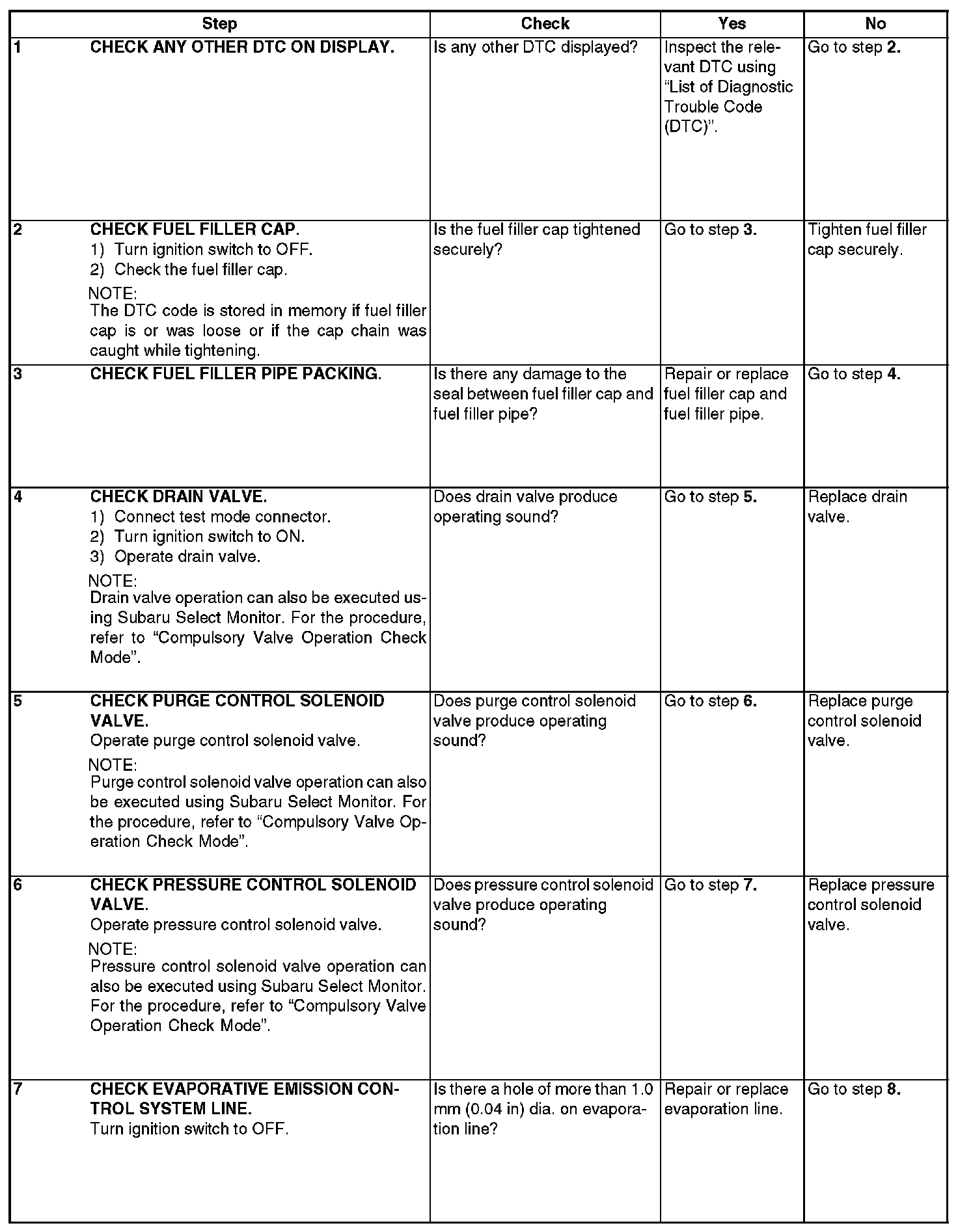 - There is a hole of more than 1.0 mm (0.04 in) dia. in evaporation system or fuel tank.