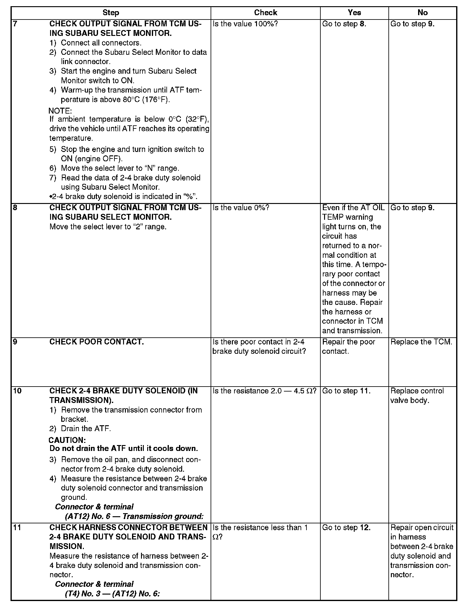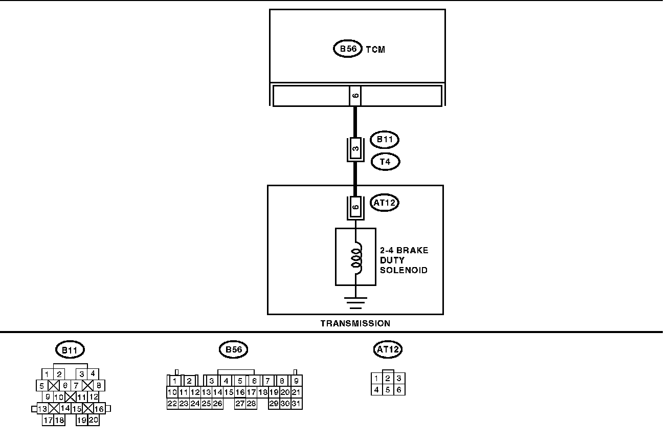 The output signal circuit of 2-4 brake duty solenoid is open or shorted.