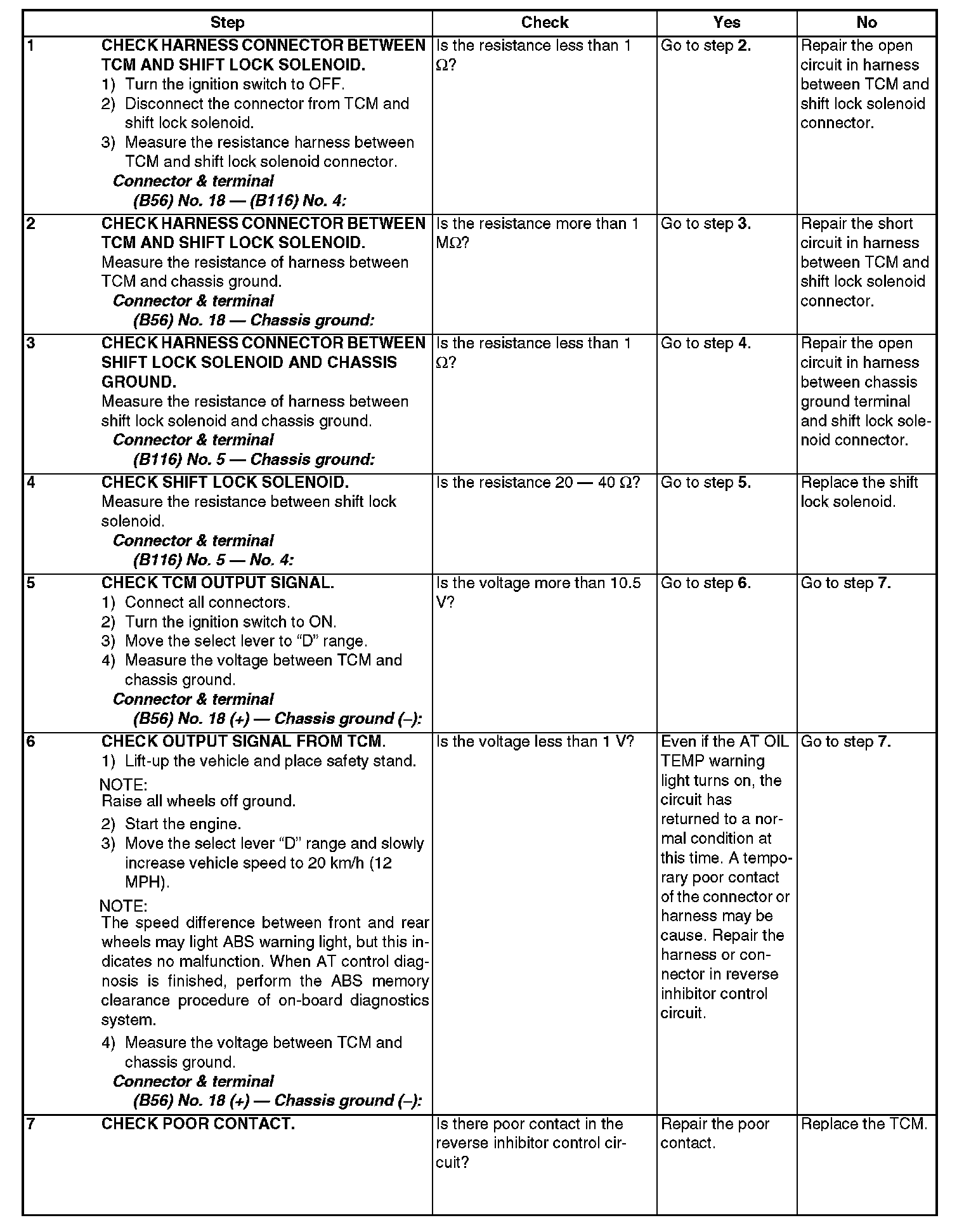 DTC P0801 - REVERSE INHIBITOR CONTROL CIRCUIT -Steps 1-7: