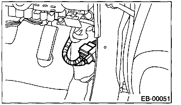 7. Remove front pillar lower trim to disconnect connector from body harness.