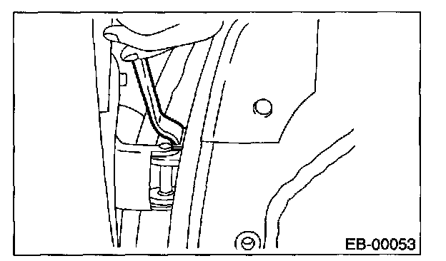 11. Using special tool, remove body-side bolts for upper and lower hinges, and remove door hinges.