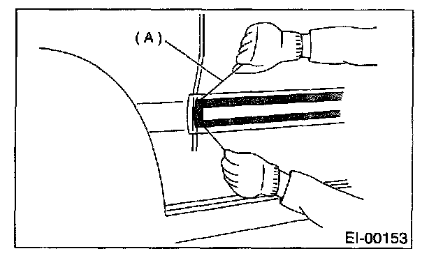 1. Attach masking tape to outer perimeter of side protector. (If original side protector is re-installed, tape the entire protector.)