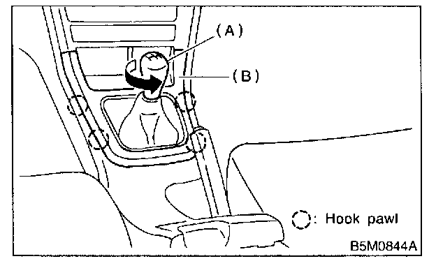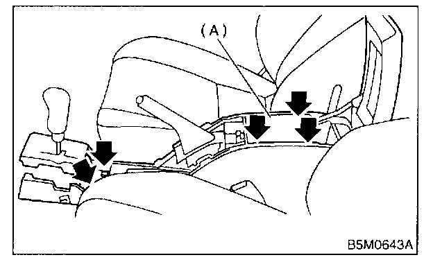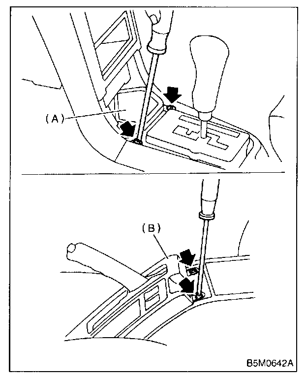 2. Remove shift knob (A) (MT model) and front cover (B).