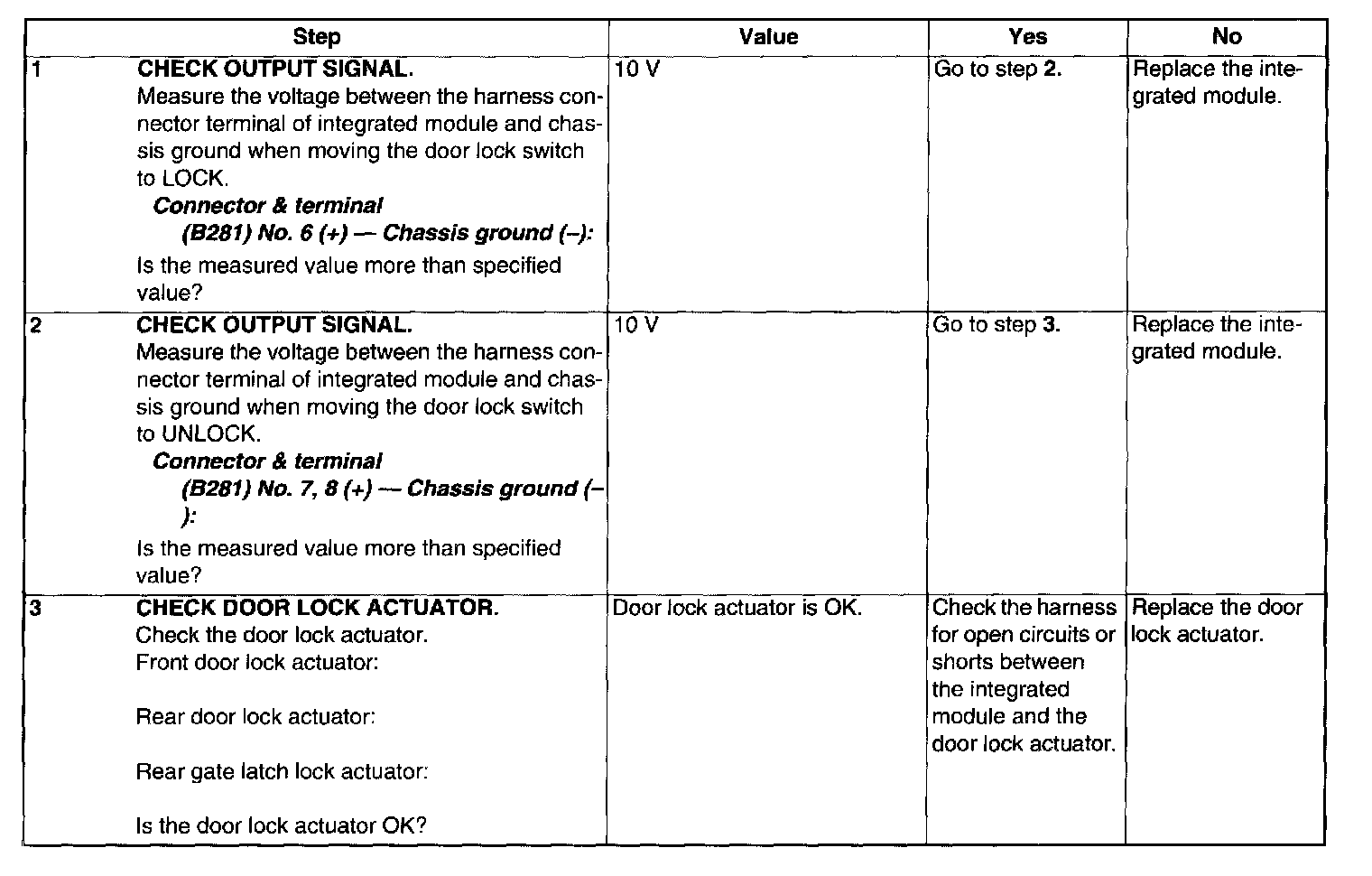 Check Door Lock Actuator and Circuit