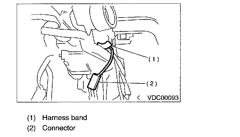 6. Release the lock of harness band and disconnect connector of steering angle sensor.