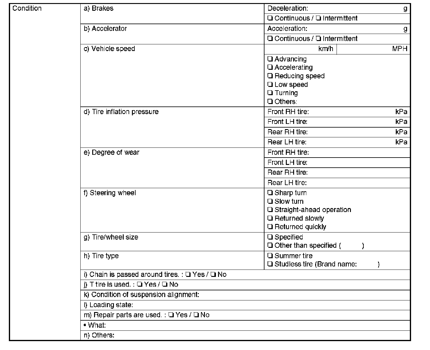 CHECKCheck the following items about the vehicle's state.