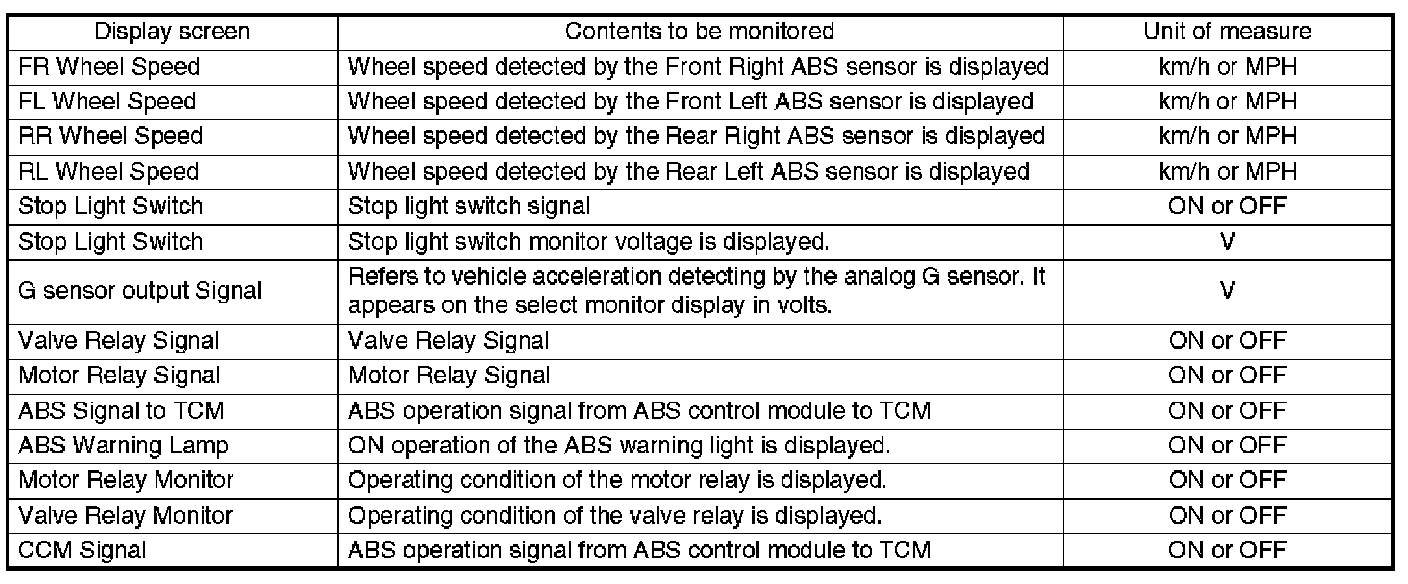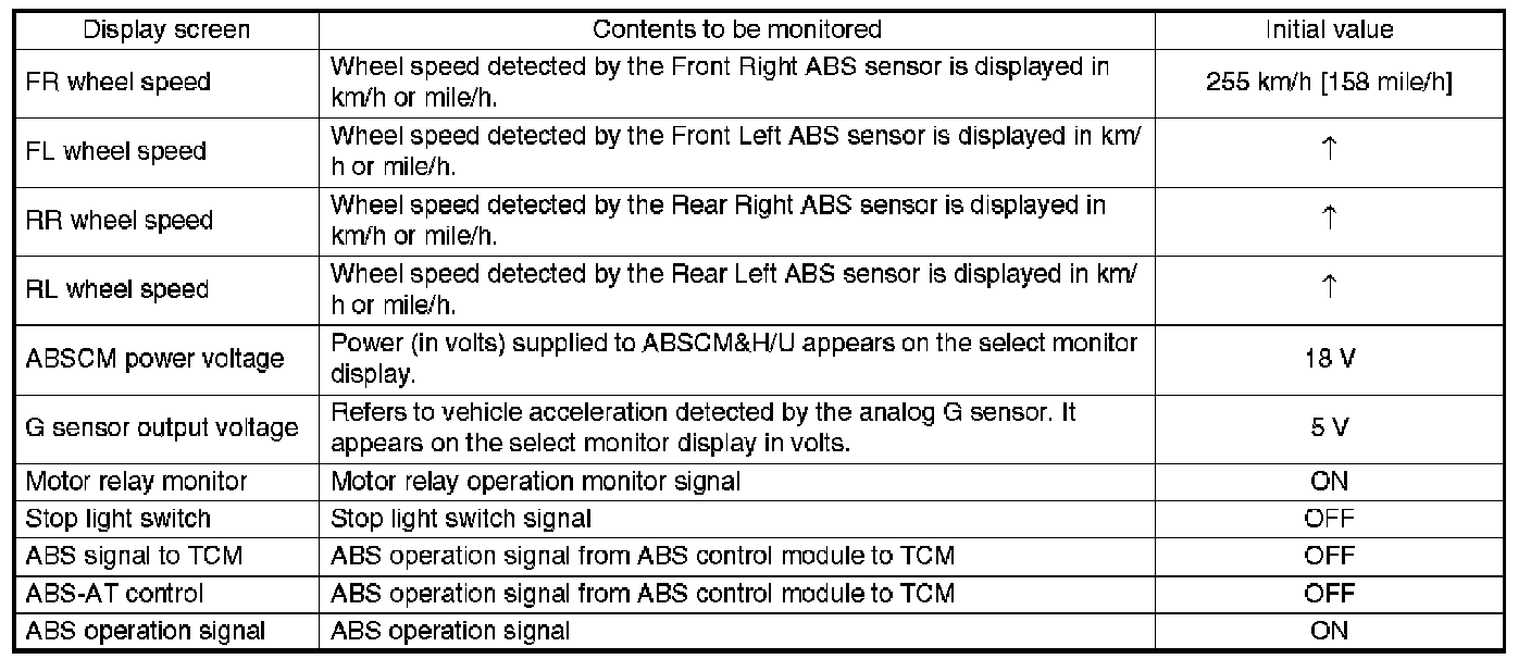^ If freeze frame data is not properly stored in memory (due to a drop in ABSCM power supply, etc.), a DTC, preceded by a question mark "?", appears on the select monitor display. This shows it may be an unreliable reading.